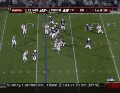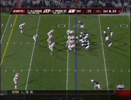 How exciting was it for the Lion faithful to finally see a team that has the galls to respond to each and every score by the Illini? And we’re not talking about field goal responses either. This is Penn State in HD, we retaliate with touchdowns! Both times in the first quarter, when the Illini (who had 2 weeks to prepare for this game by the way) scored in their first two possessions, Penn State responded at will by scoring touchdowns of their own including what I would deem the real game changer.